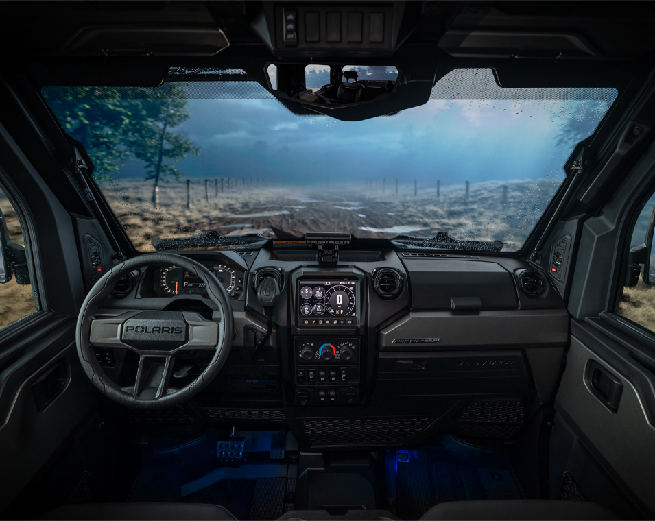 Sistema de Cabina instalado de Fábrica con Puertas Eléctricas, Techo, Parabrisas Abatible, Ventana Trasera, Espejo Retrovisor, Limpiaparabrisas y Materiales de Aislamiento Acústico, Calefacción, aire acondicionado, descongelación y recirculación instalados de fábrica con 5 configuraciones diferentes de flujo de aire, Limitador de Velocidad controlado por RIDE COMMAND, Sistema de carga de 140 amp, sistema eléctrico Polaris PULSE (cofre y techo de 3 posiciones cada uno), cargador USB, cargador de mantenimiento, toma de accesorios de 12 voltios y puerto para carga de batería de mantenimiento, Winch Polaris Pro Series con Cuerda Sintética, Auto Stop, Control Remoto Inalámbrico y Rapid Rope Recovery, Gran Defensa de Acero, Placa Protectora Inferior Completa, Anillos en D en Defensa y Barra Superior