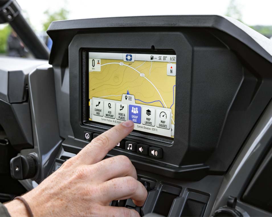 Pantalla RIDE COMMAND de 7": Cámara Trasera, Instrumentación Digital, GPS Incorporado, Group Ride (Basado en Celular o GPS), Mapa Topográfico, Conectividad para Smartphone USB & Bluetooth, Radio Meteorológica & AM/FM (Sistema de Audio se vende por separado), Capacidad de Comunicación dentro del Vehículo con Auriculares Sena.